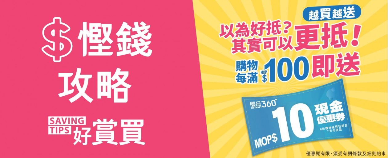 慳錢攻略 - 購物每滿MOP$100即送MOP$10現金優惠券